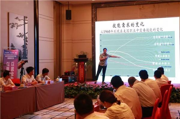王文槿主任结合当前形式下职业教育再提升作了重要讲话,她表明:“2020年供求关系预测,我们再没有廉价富有劳动力可用,所以现有劳动力质量必须要高。对于我们职业教育来说,我们必须提高学生技能水平。2017年,人社部提供了一组官方权威数据表明:中国基本人口中有一半是无技能人员,职业教育发展落后美国60年,这是中国发展的软肋,也是我们面临的国际形式。这个软肋不提高,我们国力就不能提高,要提升职业技能人员数量才能提升我国国力。”