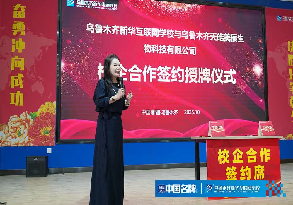 此次乌鲁木齐新华互联网学校与天皓美辰有限公司的成功签约,是校企携手、共育英才的生动实践,更是职业教育服务产业发展的具体体现。未来,双方将以此次合作为起点,持续深化合作内容、拓展合作领域,打造校企合作示范样板,为培养更多高素质技术技能人才、推动区域经济社会发展作出更大贡献!