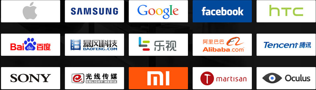 全球前10大科技公司有8个都投资了VR技术的相关项目,开启VR未来市场布局。苹果、索尼、三星、HTC、Facebook、百度、IBM、腾讯、惠普、甚至富士康等国内外多家大型企业都开始纷纷抢占VR市场。